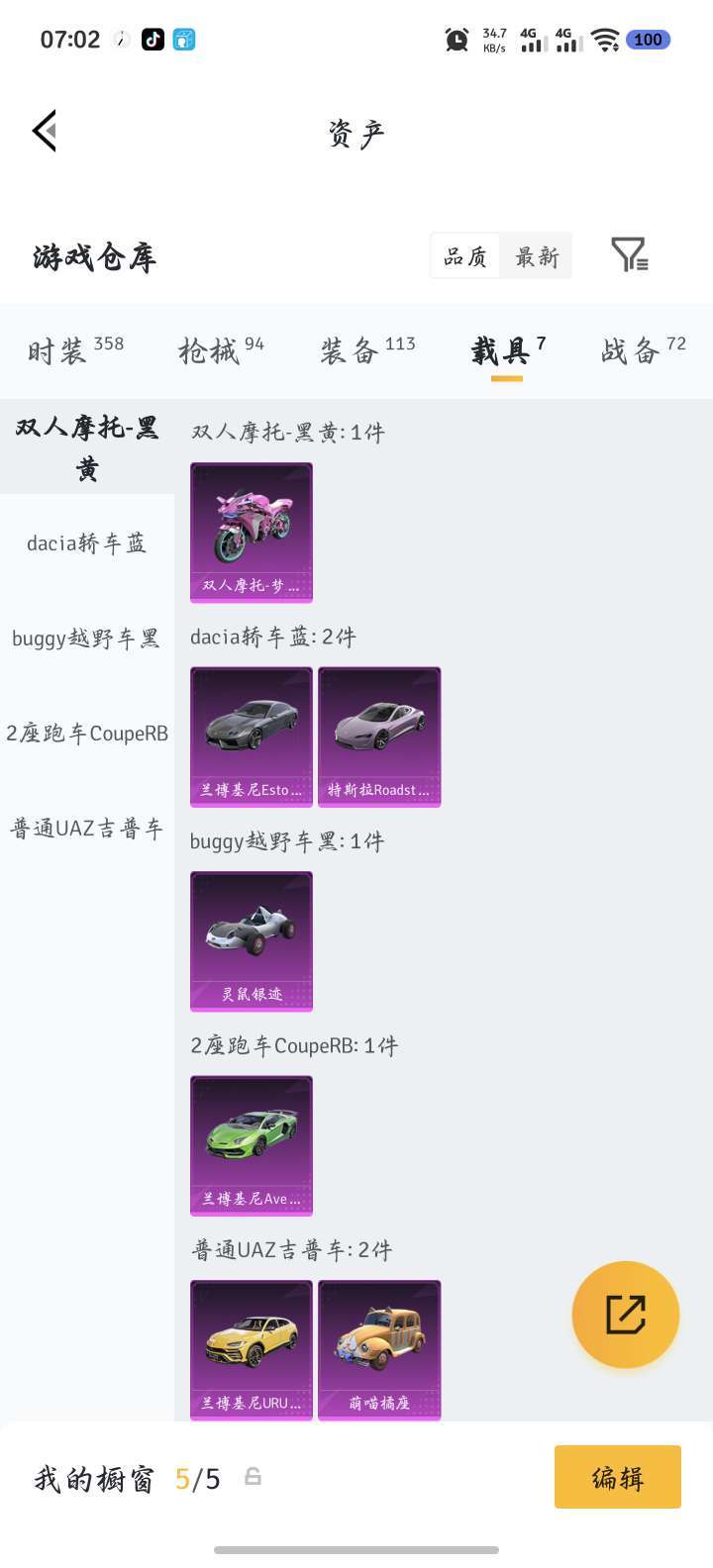 限制: 租号3次及以上 |装备描述:三部兰博基尼,一部特斯拉火箭少女摩托车。四个枪皮