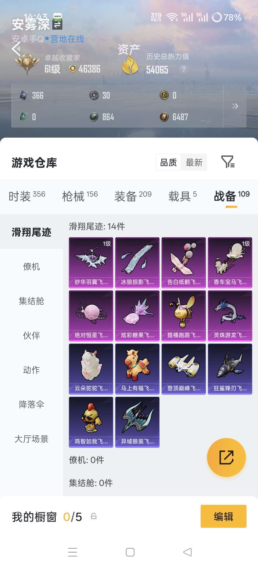 装备描述:安卓Q区卓越收藏家,61级,热力值5.4w+。载具含3车2马,紫品滑翔尾迹、降落伞丰富,时装枪械齐全,账号优质。