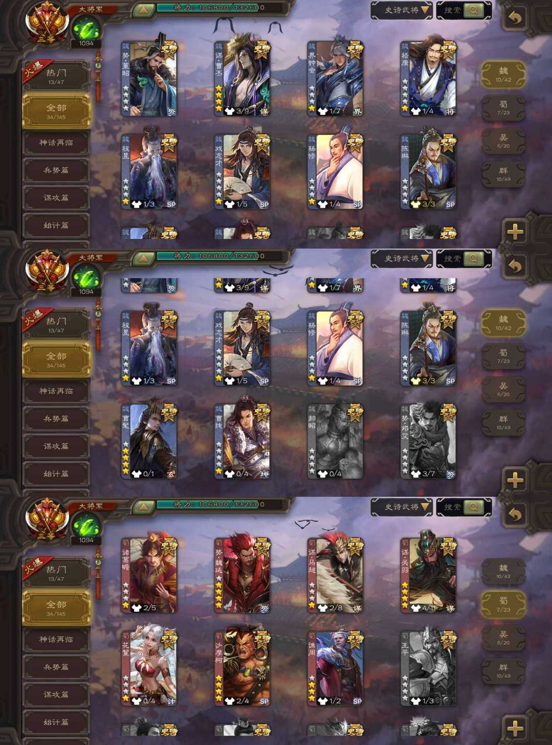 【有卡有豆】高倍拉黑梦枕千秋动态友诸葛亮/势魏延/操刀必割界徐盛/荡然由心谋曹丕/势太史慈张奋谋关羽