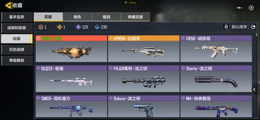 1红(日蚀)1金120紫枪皮,50紫角色,可排位,游戏币可使用